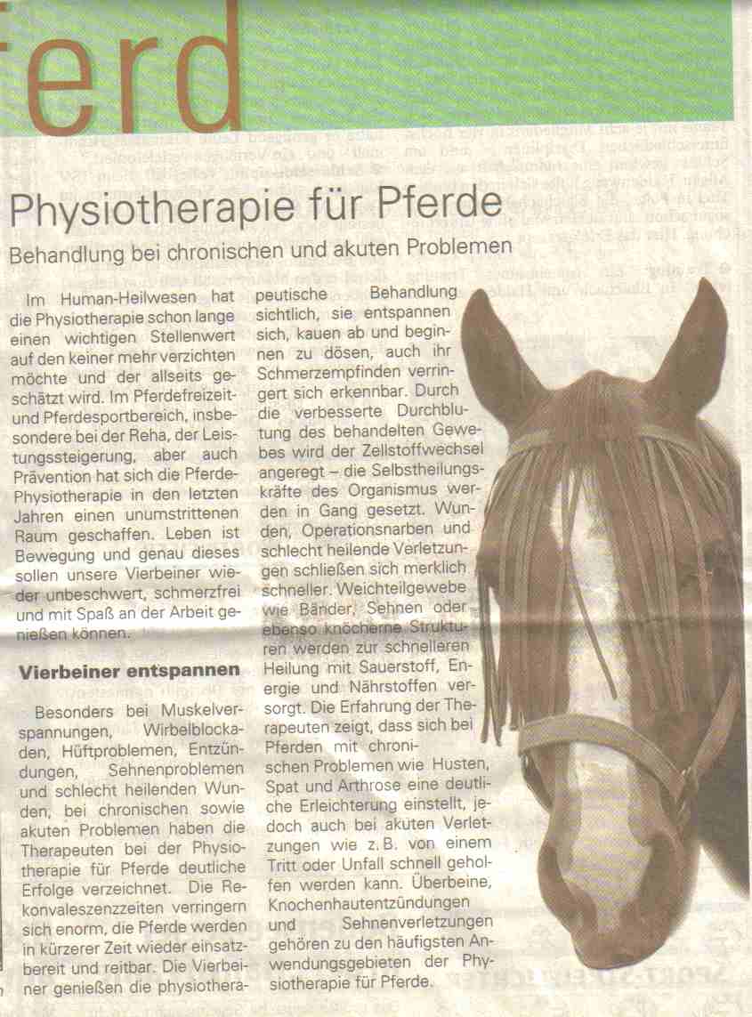 Physiotherapeutische Betreuung der Schulpferde des Reit- und Voltigierclub