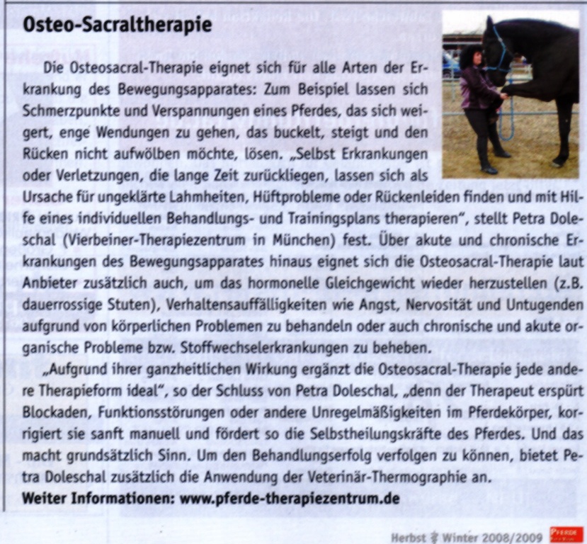 Osteo-/Physiopathie/Akupunktur/ Thermografie/Bioresonanz für Pferde, Hunde